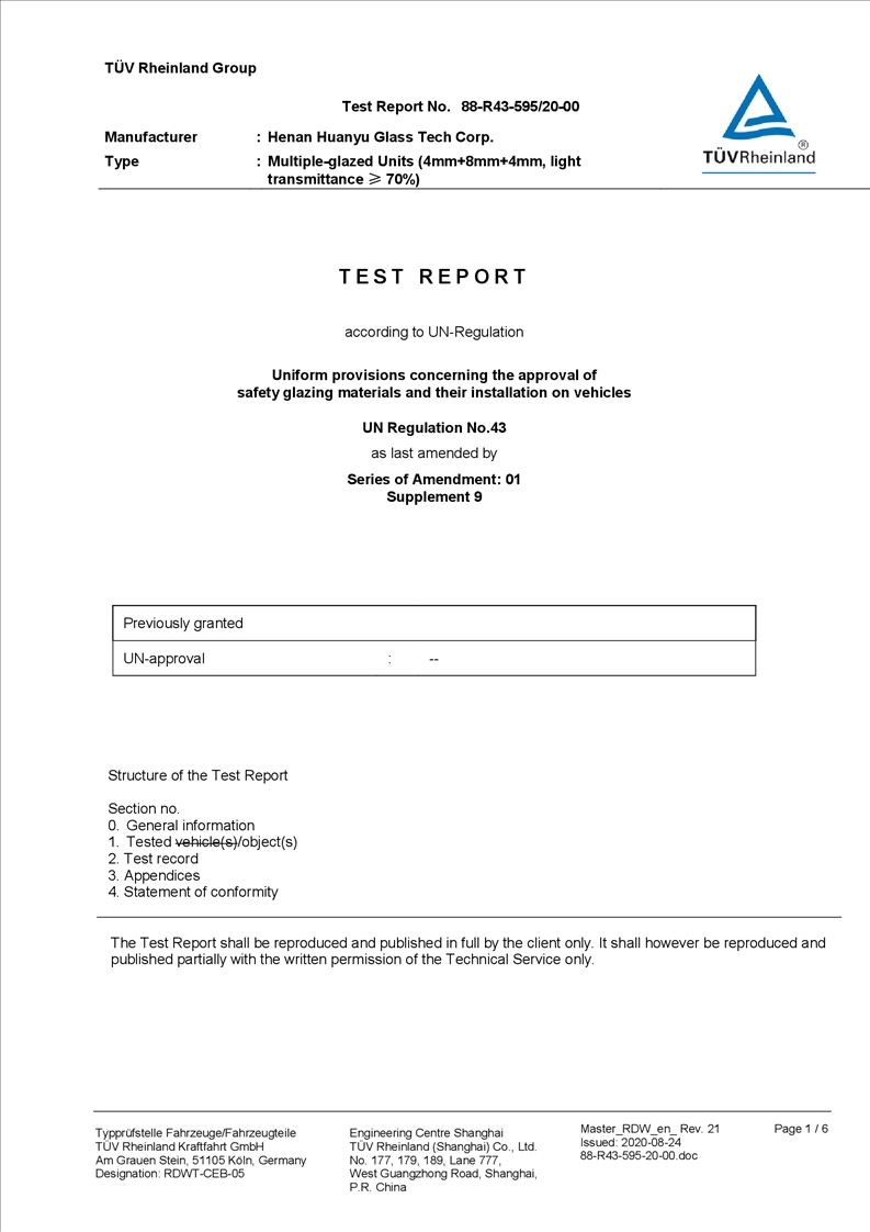河南環(huán)宇玻璃科技股份有限公司年產(chǎn) 5 萬平方米驗(yàn)收報告公示